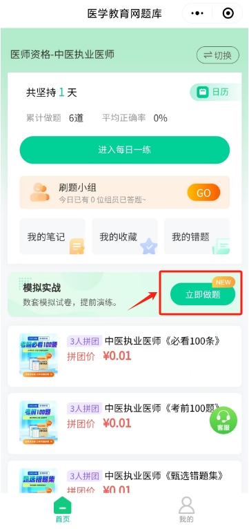 第二步,查看【模擬實(shí)戰(zhàn)】,點(diǎn)擊立即做題,即可進(jìn)入模擬實(shí)戰(zhàn)演練: