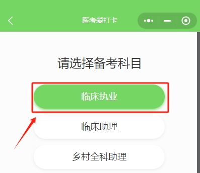 開(kāi)工大吉,打卡開(kāi)啟!2025年醫(yī)師資格【醫(yī)考愛(ài)打卡】第三期正式上線(xiàn)!本次開(kāi)啟類(lèi)別為“臨床執(zhí)業(yè)、臨床助理、鄉(xiāng)村全科助理醫(yī)師”三個(gè)類(lèi)別,各位考生微信搜索“醫(yī)考愛(ài)打卡”小程序,選擇對(duì)應(yīng)類(lèi)別后,開(kāi)啟你的2025免費(fèi)打卡刷題啦!