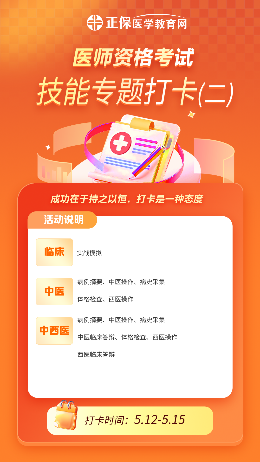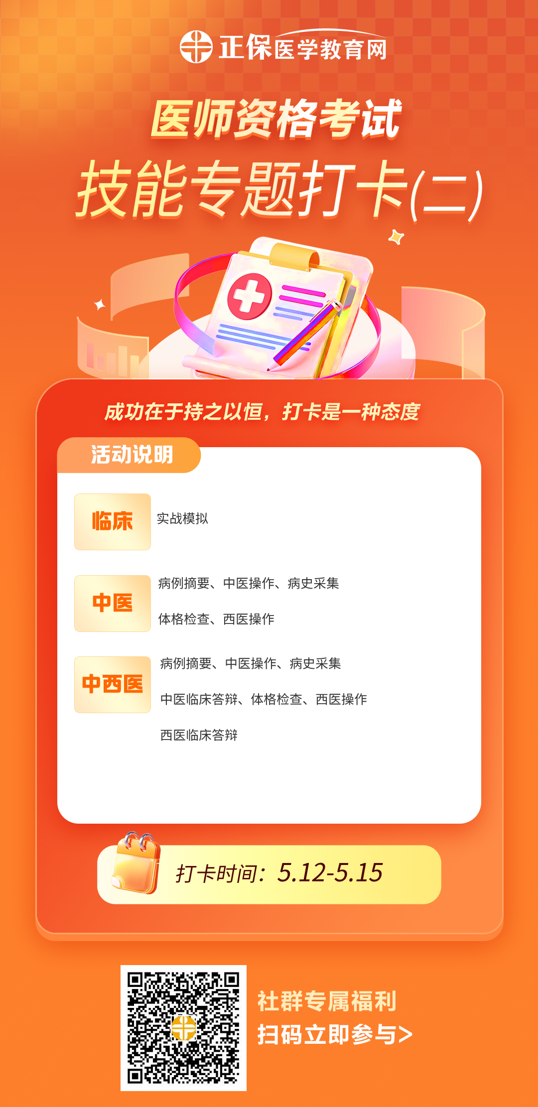 距離2025年醫(yī)師資格實(shí)踐技能考試僅剩1個(gè)月時(shí)間!各位考生務(wù)必要盡快調(diào)整復(fù)習(xí)方向,開(kāi)啟技能集中沖刺!為了引導(dǎo)各位考生盡快進(jìn)入技能沖刺狀態(tài),醫(yī)學(xué)教育網(wǎng)特在5月開(kāi)啟【技能專(zhuān)題打卡】。總結(jié)多年考試經(jīng)驗(yàn)及考試規(guī)律,點(diǎn)撥拿分技巧以及丟分誤區(qū),幫助大家快速提升技能應(yīng)試能力!