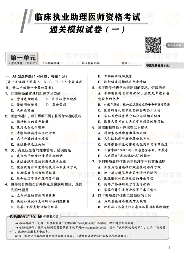 本書包含6套模擬試卷,12個(gè)單元,每個(gè)單元150分,嚴(yán)格按照考試方式進(jìn)行模擬練習(xí)。題目以綜合試卷的形式出現(xiàn),各單元考試科目貼近考試趨勢,題目難度緊隨考試難度,可以實(shí)際檢測考生真實(shí)水平,從而了解自己的不足,查漏補(bǔ)缺。本書還提供了深入且細(xì)致的解析,有關(guān)鍵解題點(diǎn),也有非答案選項(xiàng)的排除點(diǎn),旨在提升刷題效率與精準(zhǔn)度,是您在模擬練習(xí)及備考過程中不可或缺的得力助手。