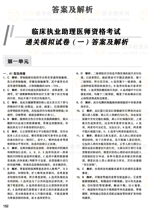 《2026年臨床助理醫(yī)師通關(guān)模擬試卷》全新改版,每單元答案解析部分增加答案速查表,方便速查答案。本書提供了深入且細(xì)致的解析,還將關(guān)鍵解題要點(diǎn)以加粗形式突出展現(xiàn),旨在提升刷題效率與精準(zhǔn)度,是您在模擬練習(xí)及備考過程中不可或缺的得力助手。