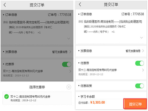 一年一度的爽十二購課節(jié)又來啦,醫(yī)學(xué)教育網(wǎng)為了回饋廣大學(xué)員,臨床助理醫(yī)師高效定制班、無憂實(shí)驗(yàn)班、超值精品班好課85折更可折上使用優(yōu)惠券,面授旗艦班專項(xiàng)800元學(xué)費(fèi)紅包,VIP簽約特訓(xùn)營12.12當(dāng)天購買享受免息,小編為你奉上zui省錢的購課攻略!