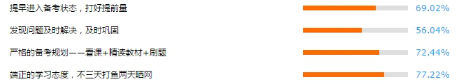 根據(jù)考后調(diào)查問卷結果顯示,大部分同學都選擇了以下四項,無論是端正學習態(tài)度還是有嚴格的備考規(guī)劃,我們都需要掌握正確的學習方法。網(wǎng)校根據(jù)多年輔導經(jīng)驗為大家提供以下幾點建議。