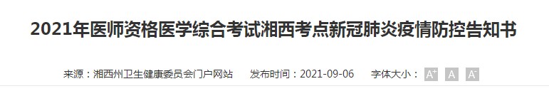 2021年醫(yī)師資格醫(yī)學(xué)綜合考試湘西考點新冠肺炎疫情防控告知書