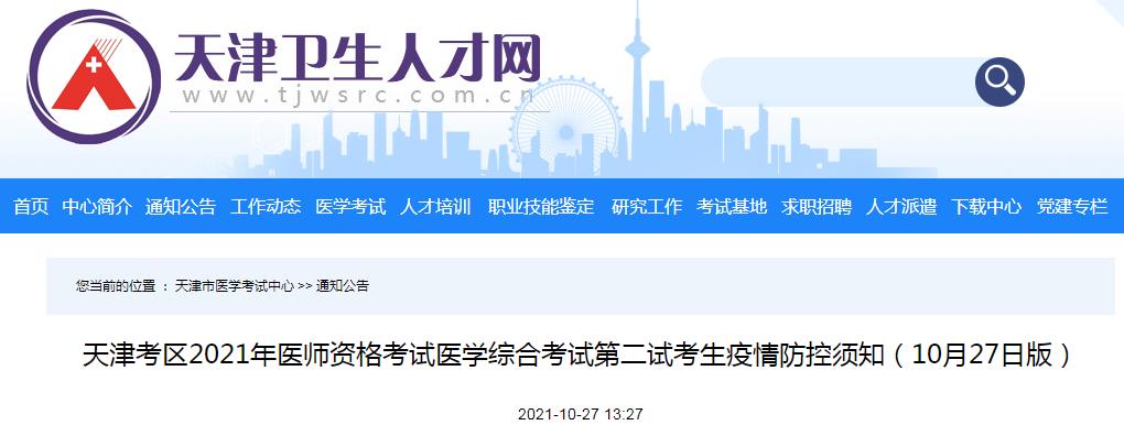 天津考區(qū)2021年醫(yī)師資格考試醫(yī)學(xué)綜合考試第二試考生疫情防控須知(10月27日版)