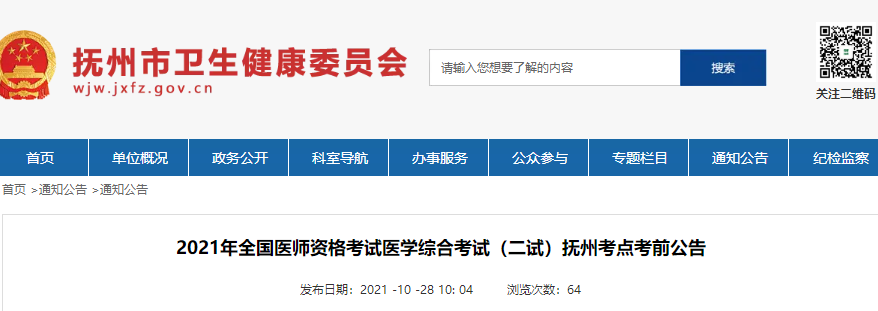 2021年臨床助理醫(yī)師考試(二試)撫州考點(diǎn)考前公告