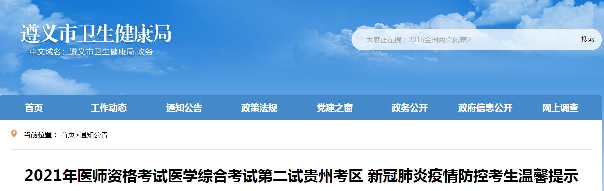 2021年臨床助理醫(yī)師資格考試遵義考點“一年兩試”二試防疫公告