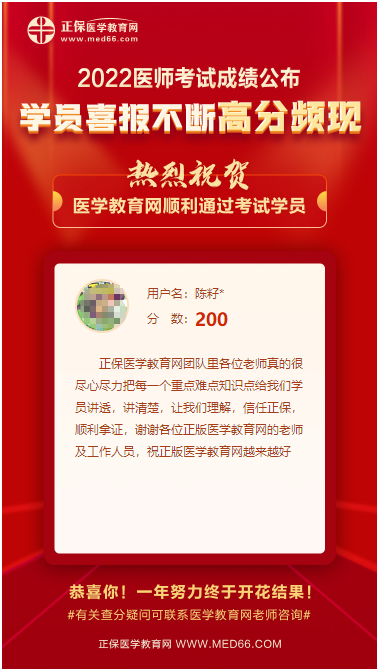 2022醫(yī)師資格考試成績終于塵埃落定,你通過了嗎?網(wǎng)校自成績公布后收到了來自全國各地學(xué)員的好評(píng)!以下來自一位通過臨床助理醫(yī)師考試學(xué)員的感謝!