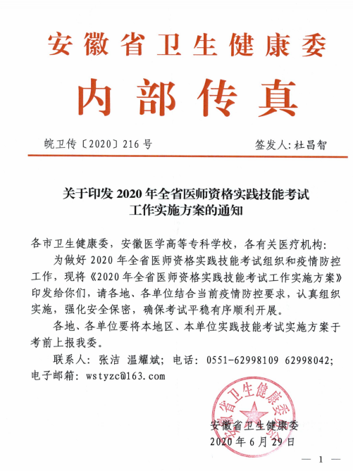 - · 2020年安徽省臨床助理醫(yī)師實踐技能考試基地名單、考生考前須知