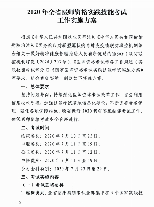 關(guān)于印發(fā)2020年全省醫(yī)師資格實踐技能考試工作實施方案的通知