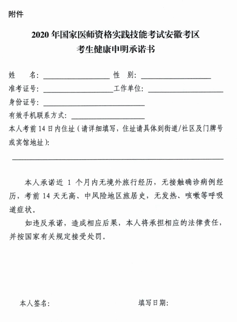 2020年黃山市臨床執(zhí)業(yè)助理醫(yī)師實踐技能考試安排與疫情防控通知