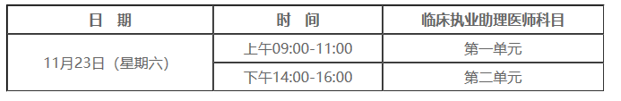 2019年在天津、吉林、上海、江蘇(新增)、福建、湖南(新增)、廣東(新增)、廣西、海南、貴州、云南、寧夏(新增)12個(gè)地區(qū)開(kāi)展臨床執(zhí)業(yè)醫(yī)師、臨床執(zhí)業(yè)助理醫(yī)師、中醫(yī)類別執(zhí)業(yè)醫(yī)師和中醫(yī)類別執(zhí)業(yè)助理醫(yī)師綜合筆試“一年兩試”試點(diǎn)。在試點(diǎn)考區(qū)通過(guò)當(dāng)年實(shí)踐技能考試,但未通過(guò)第一次醫(yī)學(xué)綜合筆試且無(wú)違紀(jì)違規(guī)行為的考生可報(bào)名參加第二次醫(yī)學(xué)綜合筆試(含缺考考生)。臨床助理考試時(shí)間為11月23日: