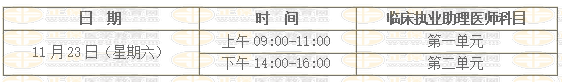 2019年在天津、吉林、上海、江蘇(新增)、福建、湖南(新增)、廣東(新增)、廣西、海南、貴州、云南、寧夏(新增)12個(gè)地區(qū)開(kāi)展臨床執(zhí)業(yè)醫(yī)師、臨床執(zhí)業(yè)助理醫(yī)師、中醫(yī)類別執(zhí)業(yè)醫(yī)師和中醫(yī)類別執(zhí)業(yè)助理醫(yī)師綜合筆試“一年兩試”試點(diǎn)。臨床助理考試時(shí)間為11月23日: