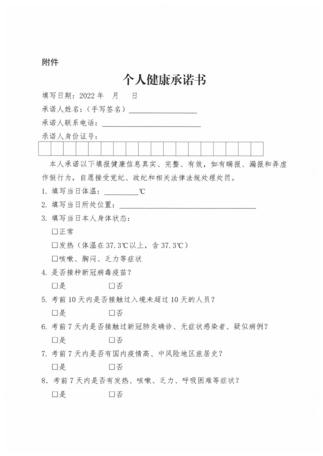 十一、考生應(yīng)自覺(jué)配合做好疫情防控工作,不得隱瞞本人健康狀況和旅居行程,如因此造成疫情傳播或其他嚴(yán)重后果的,將承擔(dān)相應(yīng)法律責(zé)任。