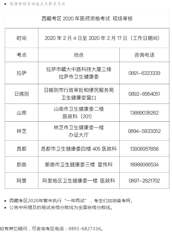 其中西藏衛(wèi)健委在轉(zhuǎn)發(fā)國家報名公告通知中提到,西藏考區(qū)2020年暫未執(zhí)行醫(yī)師資格“一年兩試”試點!請廣大考生注意!