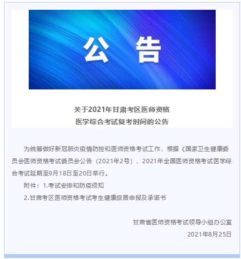 甘肅考區(qū)2021年醫(yī)師資格復考考試安排和防疫須知?