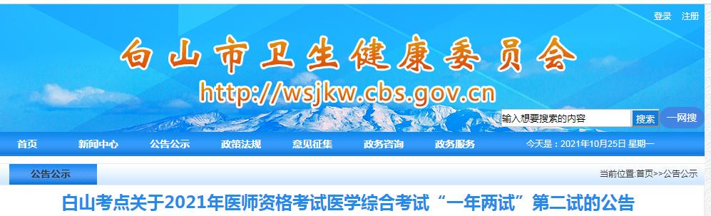 白山考點(diǎn)2021年臨床助理醫(yī)師醫(yī)學(xué)綜合考試“一年兩試”第二試的公告
