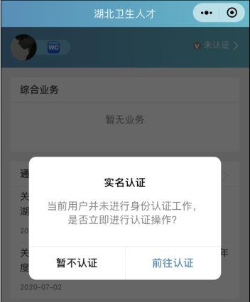 進(jìn)入綜合服務(wù)平臺,提示用戶進(jìn)行實(shí)名認(rèn)證,同時(shí)您也可以稍后認(rèn)證。