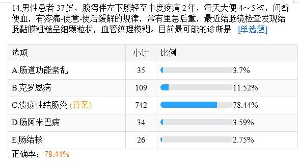 男性患者37歲,腹瀉伴左下腹輕至中度疼痛2年,每天大便4~5次,間斷便血,有疼痛-便意-便后緩解的規(guī)律,常有里急后重,最近結(jié)腸鏡檢查發(fā)現(xiàn)結(jié)腸黏膜粗糙呈細(xì)顆粒狀,血管紋理模糊。目前最可能的診斷是