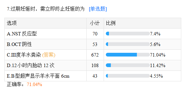 【答案解析】 終止妊娠指征:①宮頸條件成熟;②胎兒體重≥4000g或胎兒生長受限;③12小時內(nèi)胎動<10次或NST為無反應(yīng)型,OCT陽性或可疑;④尿E/C比值持續(xù)低值;⑤羊水過少(羊水暗區(qū)<3cm)和(或)羊水糞染;⑥并發(fā)重度子癇前期或子癇。