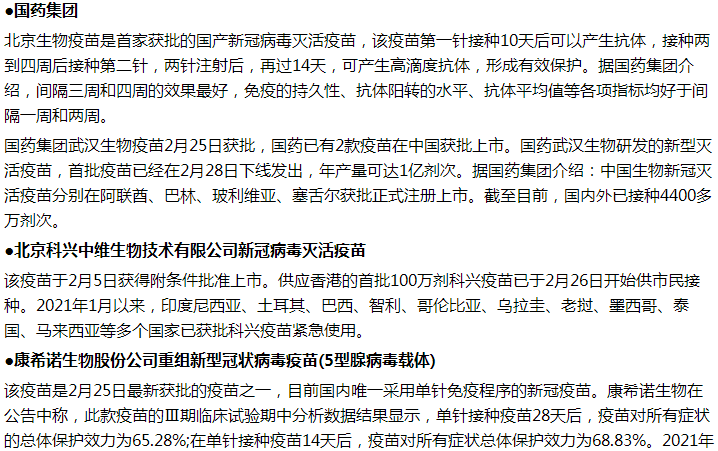 除了上述4款自主研發(fā)的新冠疫苗外,復(fù)星醫(yī)藥獲BioNTech SE授權(quán)在中國(guó)大陸及港澳臺(tái)獨(dú)家代理mRNA新冠疫苗。2月27日上午,首批疫苗已運(yùn)抵中國(guó)香港國(guó)際機(jī)場(chǎng),將分別供應(yīng)香港及澳門地區(qū),目前,中國(guó)內(nèi)地尚未上市。