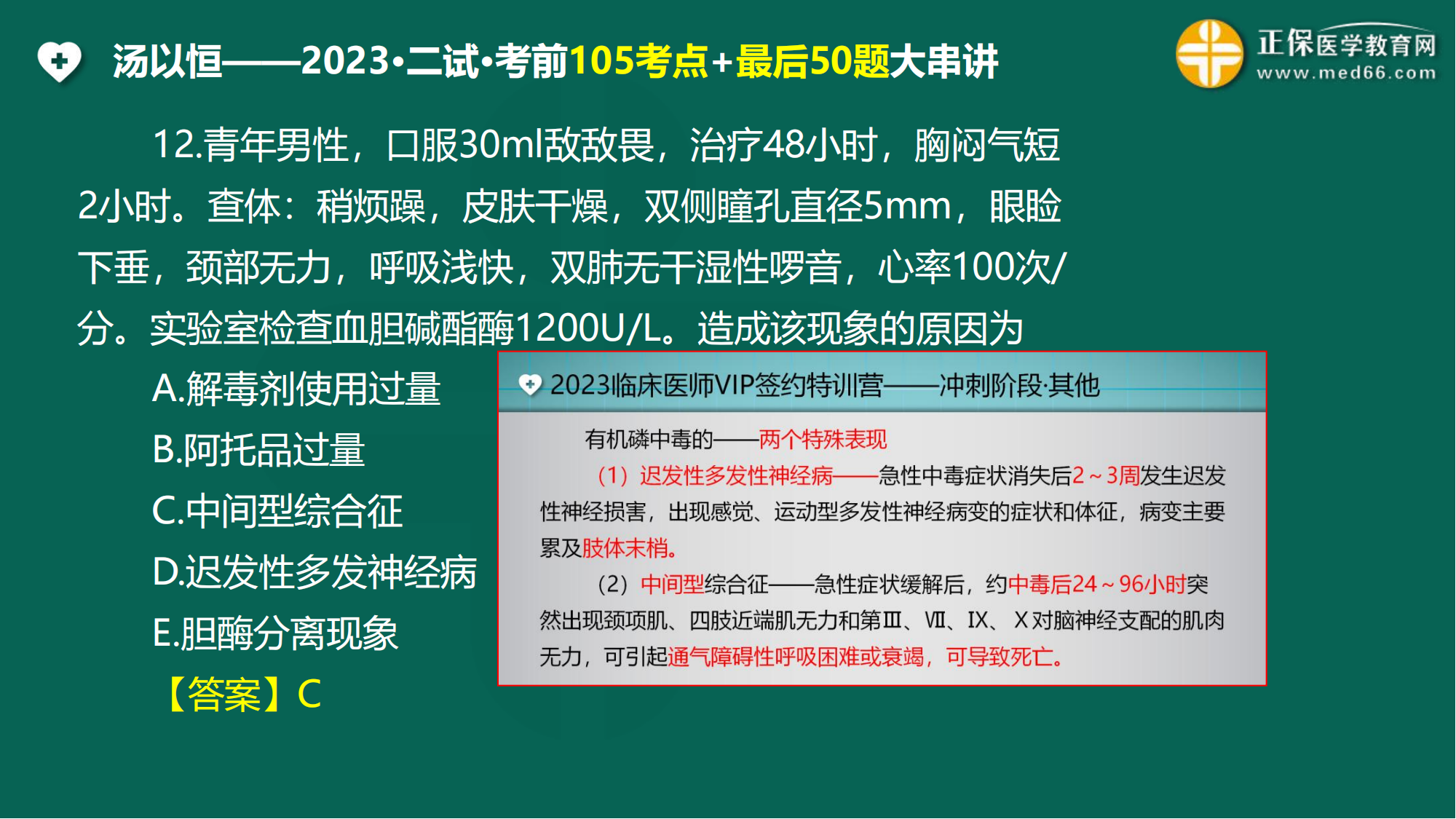 以上就是湯以恒老師11月7日直播間給大家?guī)淼尼t(yī)師二試考前緊急串講的臨床助理醫(yī)師考點,各位臨床助理醫(yī)師考生趕快考前看一看!想觀看詳細試題解析,可以點擊觀看回放視頻>>。小編預祝大家考的全會,蒙的全對!