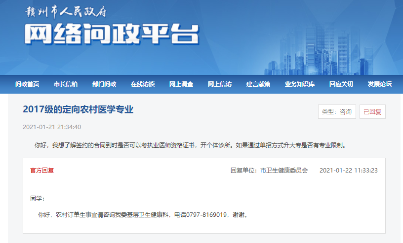 提問:2017級(jí)的定向農(nóng)村醫(yī)學(xué)專業(yè)-我想了解簽約的合同到時(shí)是否可以考執(zhí)業(yè)醫(yī)師資格證書,開個(gè)體診所。如果通過單招方式升大專是否有專業(yè)限制。