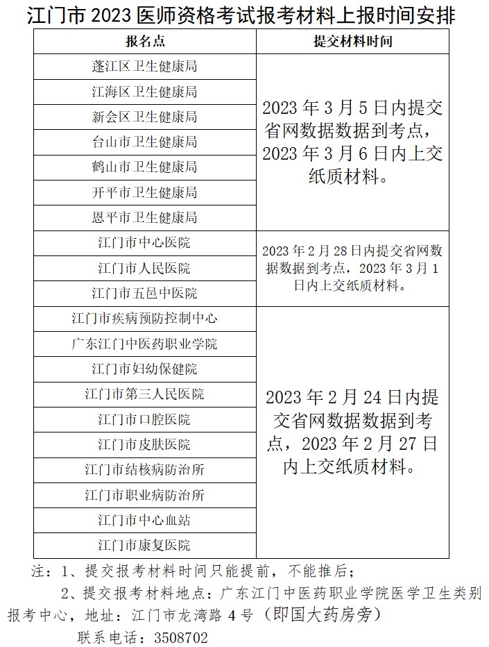 2.江門市2023醫(yī)師資格考試報(bào)考材料上報(bào)時(shí)間安排