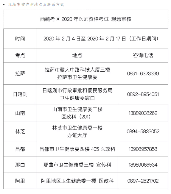 西藏2020年醫(yī)師資格現(xiàn)場(chǎng)審核考點(diǎn)及聯(lián)系電話