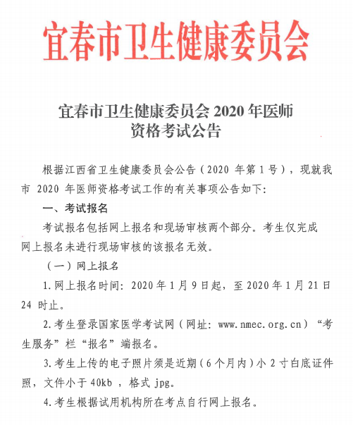 江西宜春2020年臨床助理醫(yī)師現(xiàn)場確認(rèn)審核時(shí)間和地點(diǎn)通知