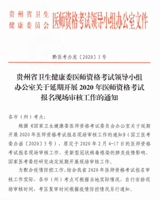 貴州省2020年臨床執(zhí)業(yè)助理醫(yī)師現(xiàn)場確認時間延遲,具體的官方文件通知如下: