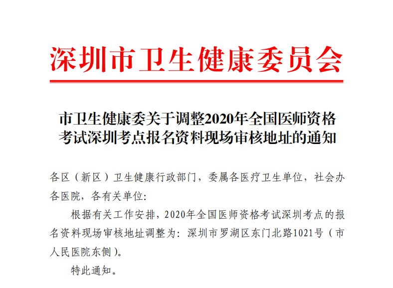 深圳轉(zhuǎn)發(fā)國家衛(wèi)健委關(guān)于延期開展2020年醫(yī)師資格考試報名現(xiàn)場審核工作的通知
