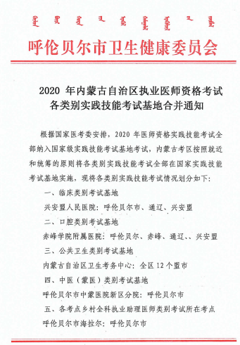 - · 2020年呼倫貝爾市臨床助理醫(yī)師實(shí)踐技能考試疫情防控提醒