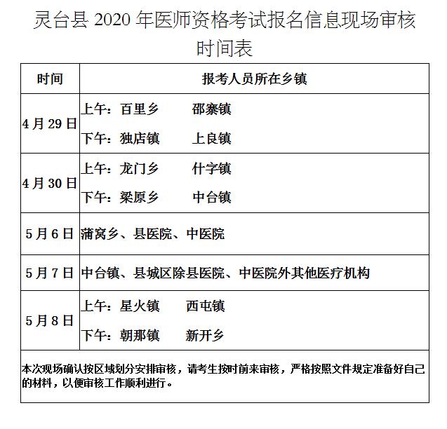 甘肅省靈臺縣2020年臨床執(zhí)業(yè)醫(yī)師報名現(xiàn)場確認(rèn)審核安排