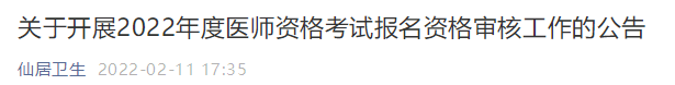 根據(jù)國(guó)家衛(wèi)生健康委醫(yī)師資格考試委員會(huì)2021第3號(hào)和臺(tái)州市醫(yī)師資格考試領(lǐng)導(dǎo)小組第24號(hào)公告的要求,為做好仙居縣2022年度醫(yī)師資格考試報(bào)名資格審核工作,現(xiàn)將相關(guān)事項(xiàng)通知如下: