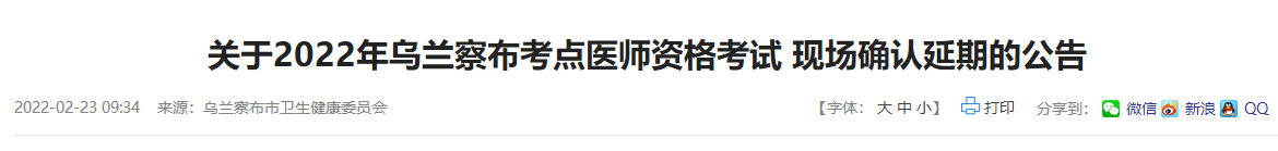 烏蘭察布考點(diǎn)2022年臨床助理醫(yī)師資格考試現(xiàn)場(chǎng)確認(rèn)延期公告