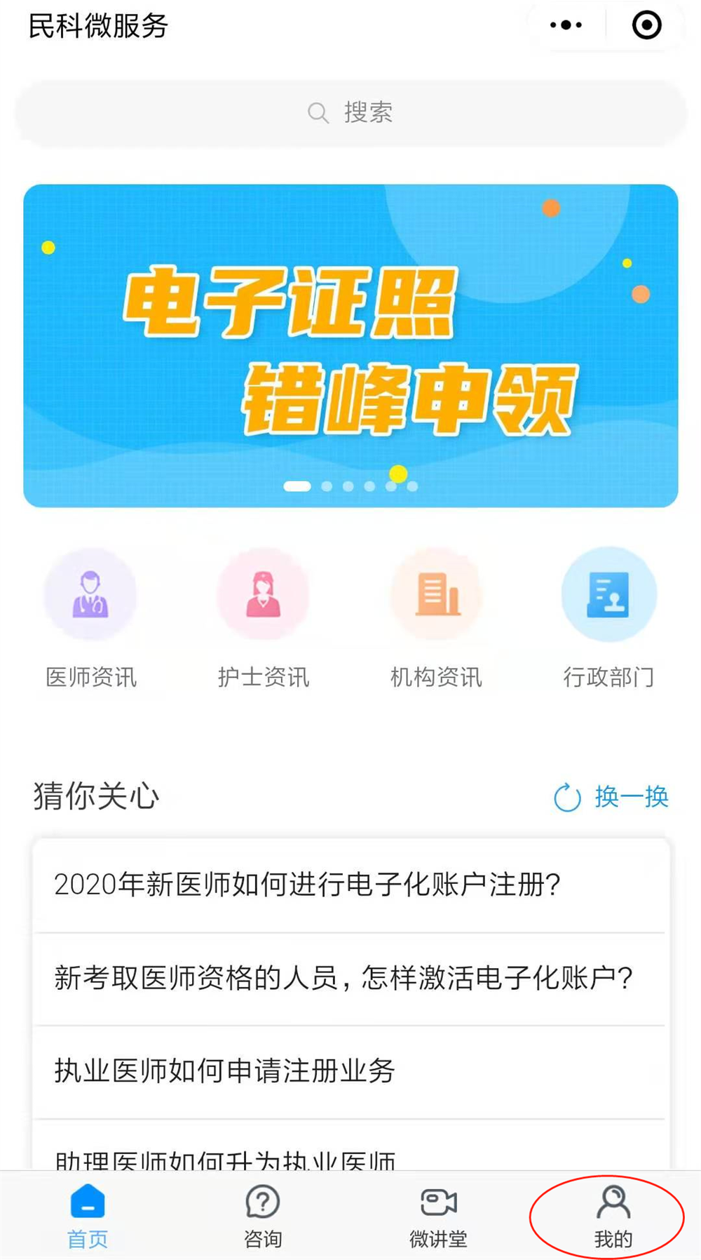 1.醫(yī)師在“民科微服務(wù)”小程序或者公眾號端綁定醫(yī)師電子化賬戶。