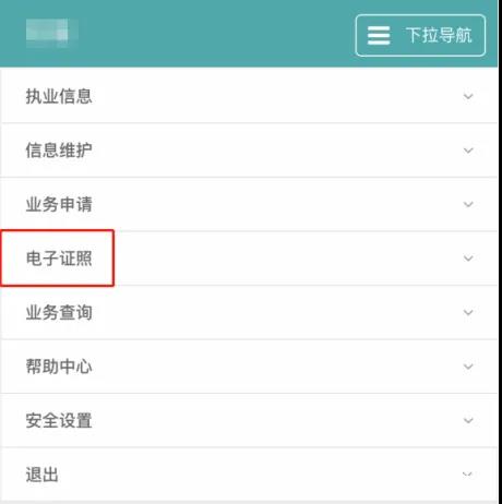 4.點擊右上角【下拉導航】進入【電子證照】功能,可參考下圖4.1: