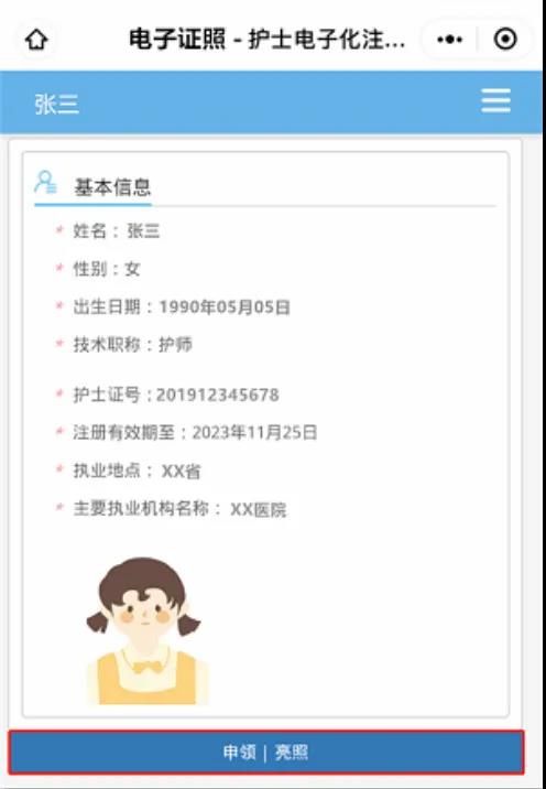 6.符合申領(lǐng)護士電子證照條件,直接亮照成功,可參考下圖6.1: