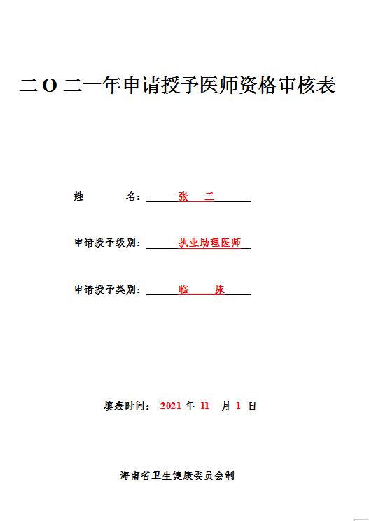 海南??诳键c(diǎn)2021年申請(qǐng)授予醫(yī)師資格審核表填寫說明(附下載表)