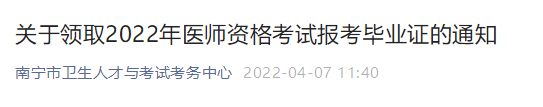 即日起,2022年醫(yī)師資格考試南寧市考點(diǎn)的考生可以領(lǐng)取報(bào)考畢業(yè)證,現(xiàn)就領(lǐng)取證書的具體事宜通知如下: