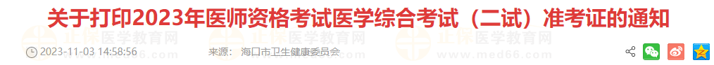海南??诳键c(diǎn)2023年臨床助理醫(yī)師二試準(zhǔn)考證11月3日起開始打??!
