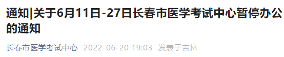 6月11日-27日長(zhǎng)春市醫(yī)學(xué)考試中心暫停辦公的通知