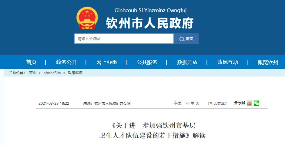 2021年3月19日,市人民政府辦公室印發(fā)了《關(guān)于進(jìn)一步加強(qiáng)欽州市基層衛(wèi)生人才隊(duì)伍建設(shè)的若干措施》(欽政辦規(guī)〔2021〕2號(hào),以下簡(jiǎn)稱《若干措施》)?,F(xiàn)就《若干措施》解讀如下: