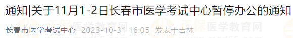 通知|關(guān)于11月1-2日長(zhǎng)春市醫(yī)學(xué)考試中心暫停辦公的通知