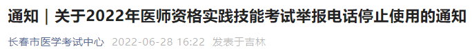 關(guān)于2022年長(zhǎng)春考點(diǎn)醫(yī)師資格實(shí)踐技能考試舉報(bào)電話停止使用的通知