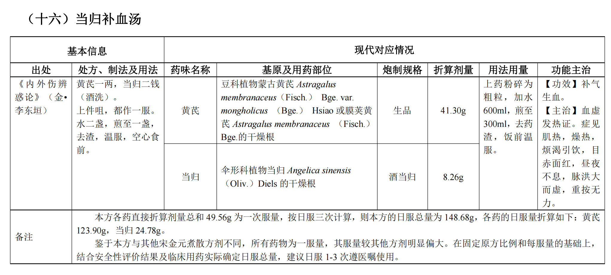 中醫(yī)執(zhí)業(yè)醫(yī)師《古代經(jīng)典名方關(guān)鍵信息表(25首方劑)》之當歸補血湯