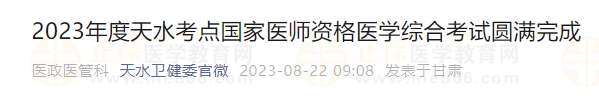 甘肅考區(qū)2023年度天水考點(diǎn)中醫(yī)執(zhí)業(yè)醫(yī)師資格醫(yī)學(xué)綜合考試順利舉行