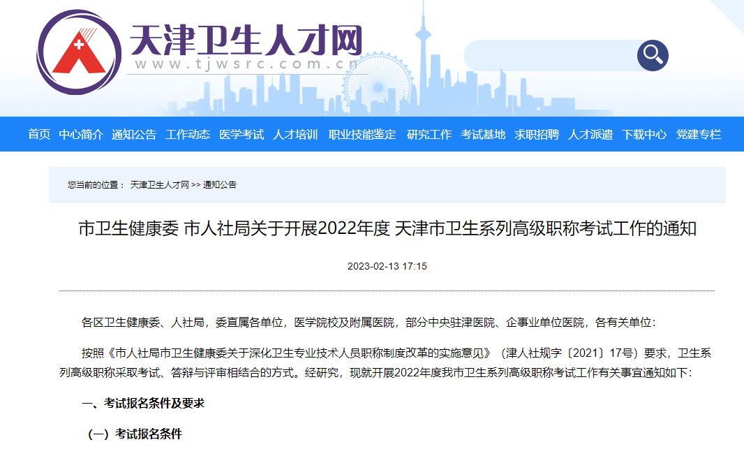 天津衛(wèi)生人才網(wǎng)發(fā)布關(guān)于開(kāi)展2022年度天津市衛(wèi)生系列高級(jí)職稱考試工作的通知,醫(yī)學(xué)教育網(wǎng)整理具體內(nèi)容如下: