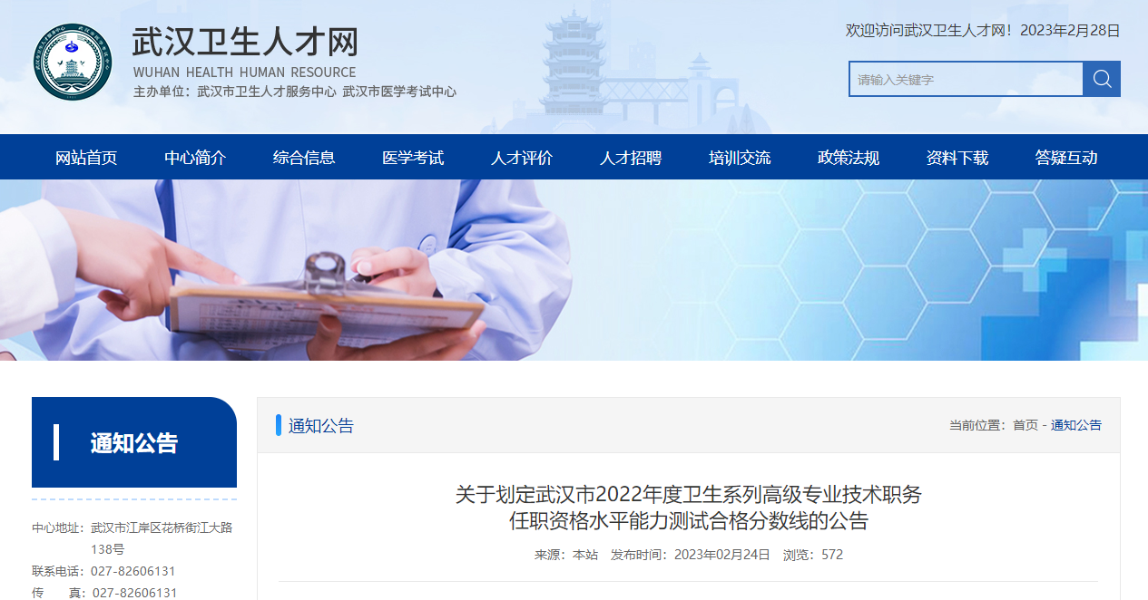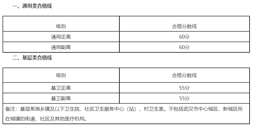 武漢市2022年度衛(wèi)生系列高級(jí)專業(yè)技術(shù)職務(wù)任職資格水平能力測(cè)試工作已結(jié)束。根據(jù)省、市職改部門有關(guān)要求,現(xiàn)將本次水平能力測(cè)試各類別合格分?jǐn)?shù)線公布如下: